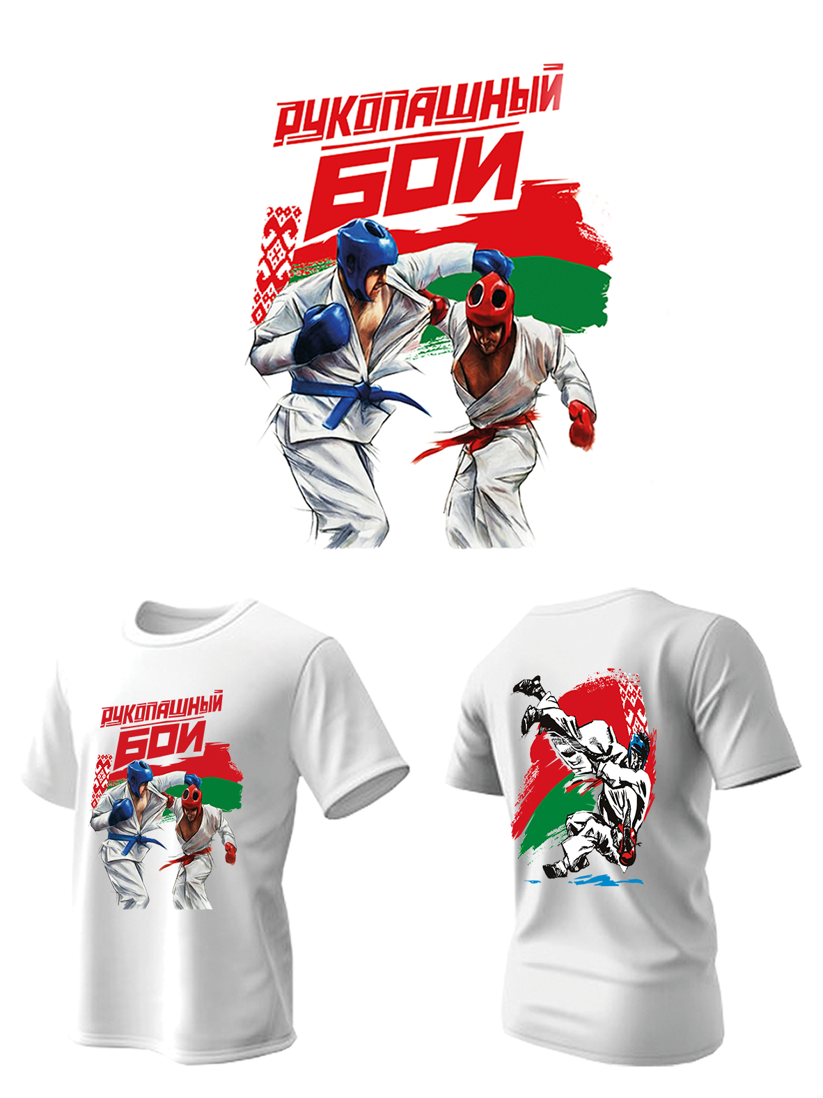 Футболка белого цвета, включает в себя принт на груди и на спине. Эти уникальные элементы добавляют вашему образу силу, стойкость . Носите эту футболку, чтобы продемонстрировать свою поддержку и любовь к рукопашному бою, будь то на чемпионатах, вечеринках с друзьями или в повседневной жизни.
