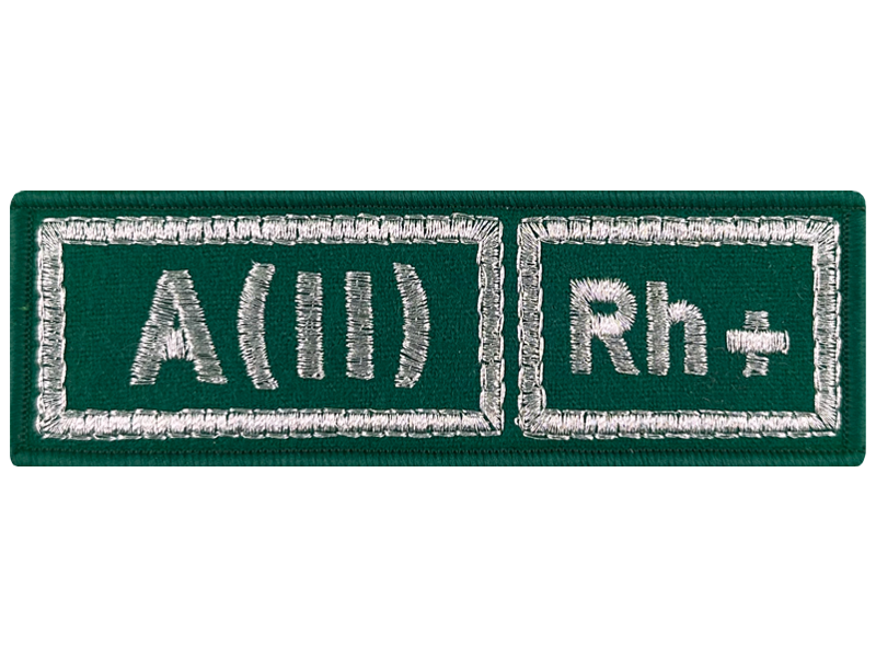 Шеврон зеленая серебром A(II) Rh+ группа крови пограничная