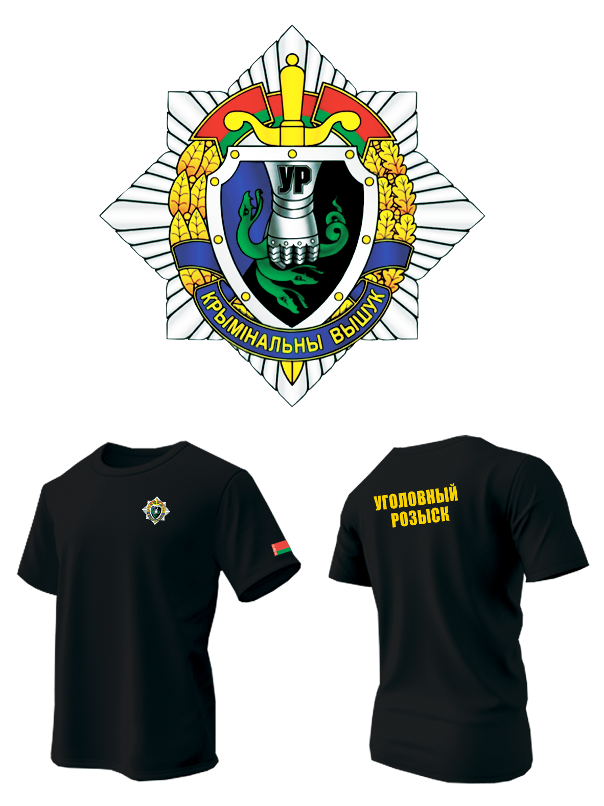 Футболка с принтом УР РБ / Уголовный розыск Республики Беларусь, черная.