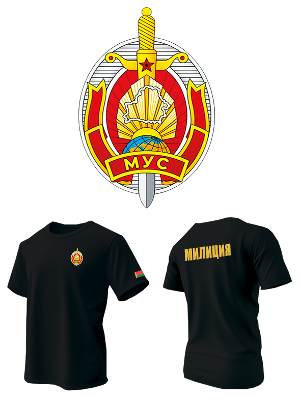 Футболка с принтом Милиция РБ, МУС Республики Беларусь, черная. Трендовая армейская модель для военнослужащих,силовых и ведомственных структур, а также для повседневной носки. Футболка является классической моделью прямого силуэта с оригинальной надписью. Футболка подходит для повседневного стиля и особых мероприятий, ведь одежда может быть и удобной, и стильной одновременно. Ткань из 100% хлопка приятная на ощупь, прекрасно держит форму, что обеспечивает комфорт в течение всего дня, как при повседневной носке, так и во время занятий спортом. Прямой покрой футболки обеспечивает свободу движений, а круглый вырез горловины добавляет удобства. Черный цвет футболки прекрасно подчеркивает яркий принт.