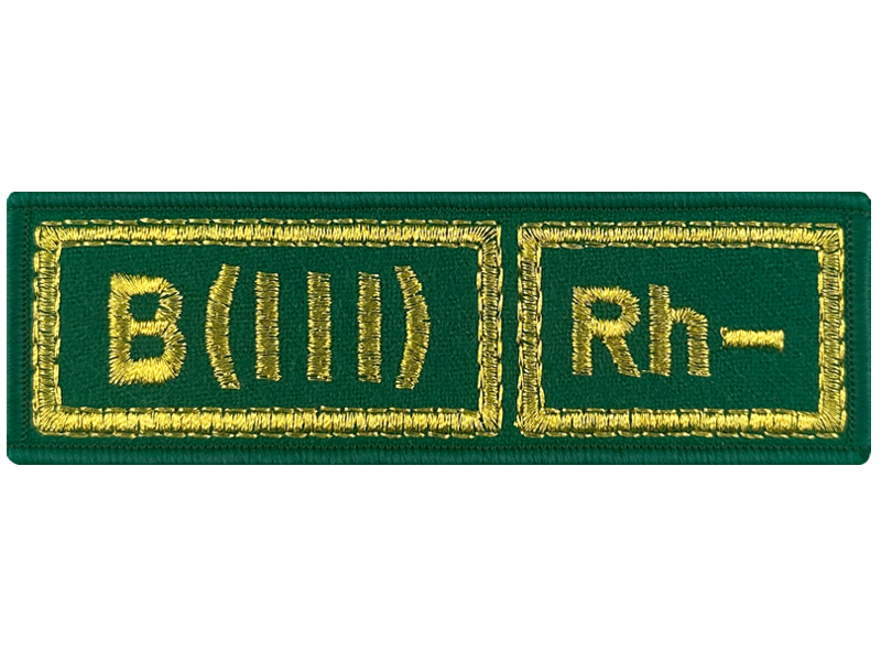 Шеврон зеленая золотом B(III) Rh- группа крови пограничная